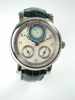 In dit precisie apparaat zit een een heliocentrisch planetarium dat de omwentelingen rond de Zon aangeeft van Mercurius, Venus, Aarde, Mars, Jupiter, Saturnus en Neptunes. Deze complicatie is tot op heden het kleinste planetarium ter wereld. (Het kost zo’n vijfentwintigduizend euro.) Maar de planeet Uranus ontbreekt.